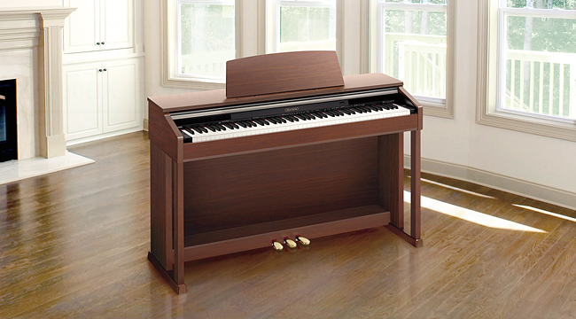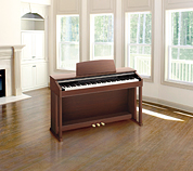 An intelligent stand design and elegant body, available in a black wood or Oak finish, combine to give these models the look of a fine piano that complements the decor of the surrounding room.